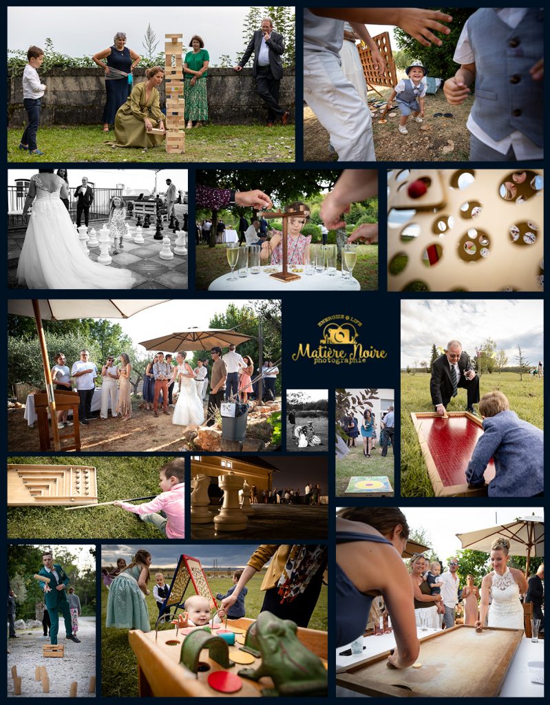 On trouve de plus en plus facilement à la location, le prêt ou même à l’achat, des jeux en bois, anciens, voire même des jeux surdimensionnés. Un tournois autour de ces jeux pendant le vin d’honneur, ou en fil rouge pendant la soirée, est une manière de mettre l’ambiance. Il est recommandé tout de même de ne pas forcer les invités à participer. Les mariés qui connaissent bien leurs invités peuvent par exemple lister au préalable les plus joueurs ou compétitifs pour que celui qui animera le jeu aille titiller leur esprit ludique (avoir un bon animateur est utile aussi!). Si les mariés participent, cela créera encore plus d’emballement pour l’animation!
